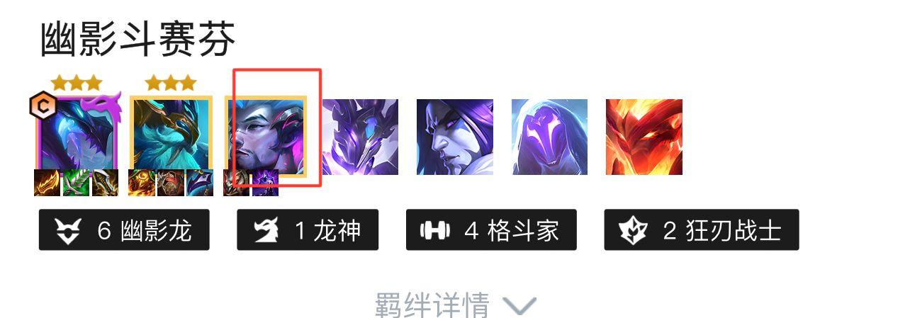 3、比如下图所示阵容叫做幽影斗赛芬,里面包含亚索。