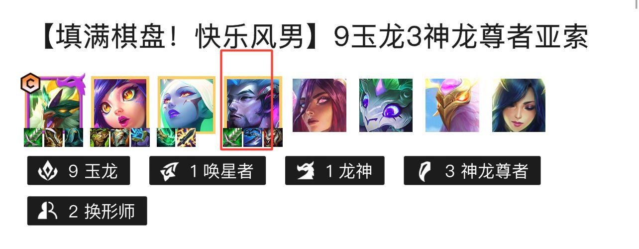 5、比如下图所示阵容叫做填满棋盘!快乐风男,里面包含亚索。