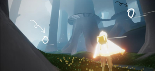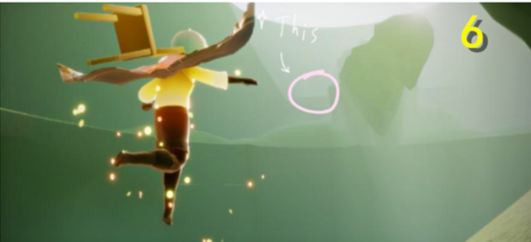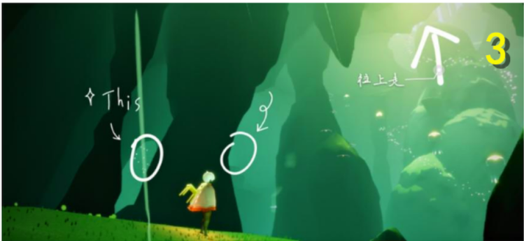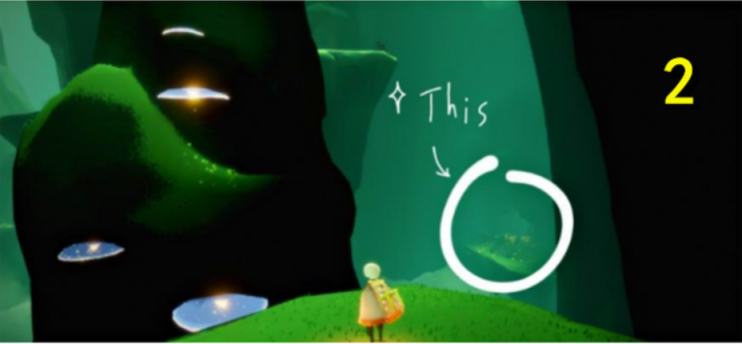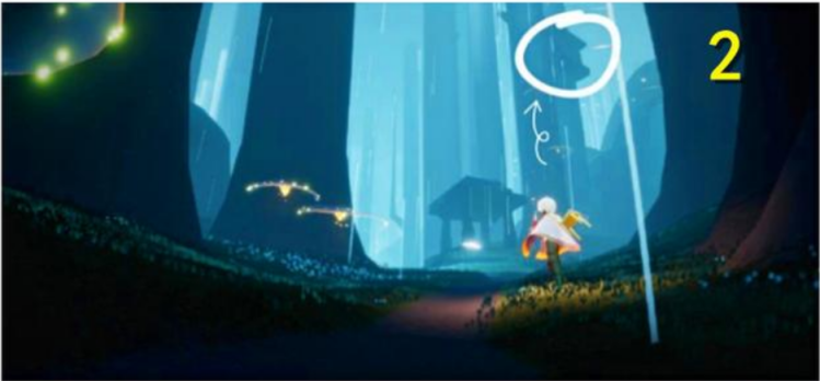 二号图白色圆圈标注的位置,开启飞行模式上去,或者是从后山峰顶直接飞下去都可以,这是一处隐藏光翼;