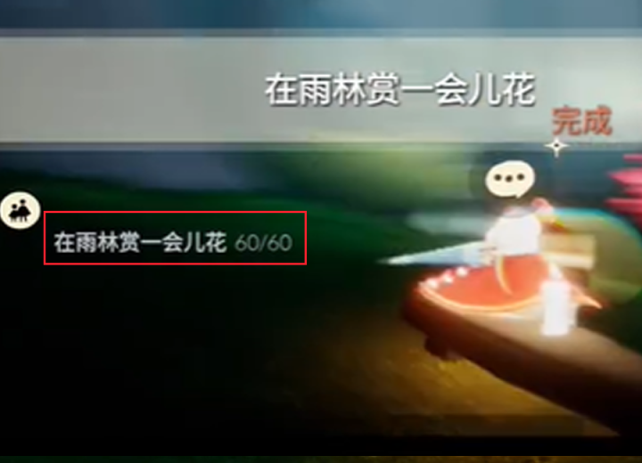 在雨林第一张图的入口处,玩家在花树旁待够1分钟就可以完成赏花任务了。