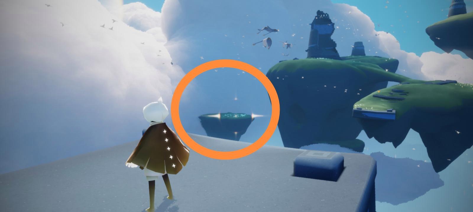 3、在平台上等待就可以看到绿色的光芒,这个就是地之灵,触碰就可以完成地之灵的收集了