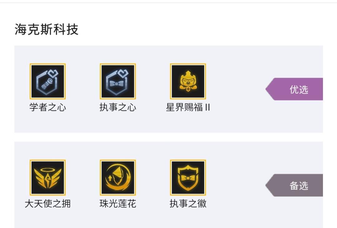 2.海克斯科技优选学者之心,执事之心和星界赐福。其次可以选择大天使之拥,珠光莲花和执事之徽。