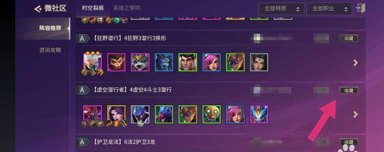 第三,找到你需要收藏的阵容,在点击阵容右侧的“收藏”。