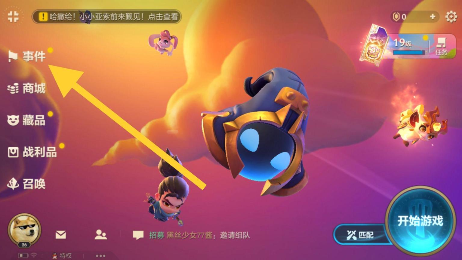 ①游戏首页点击事件:进入游戏首页,左侧菜单中,点击【事件】。