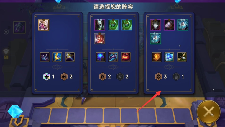 3.第三关选二星卡莎的阵容,海克斯强化选窃贼帮派,一个窃贼手套给卡莎,另个给剑姬,用妮蔻之助合成二星卡密尔,最后的轻语给烬,兹若特传送门给卡萨丁,正义之手给发条,肉的站前面,手长的放在最后面输出,就能通关了。