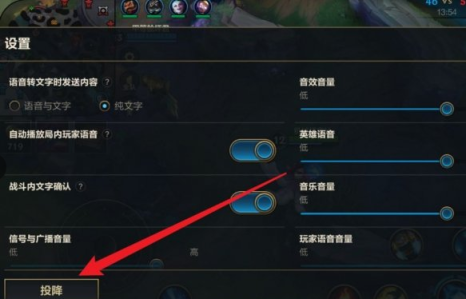 2、页面弹出设置窗口,找到在下方的“投降”按钮,点击即可发起投降。