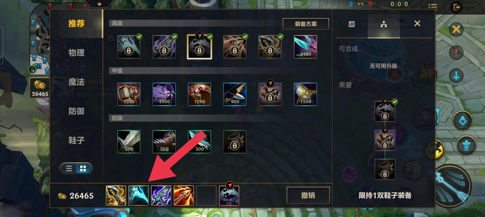 3,接下来的装备就是将攻速弓升级为飓风,同时大剑升级为无尽,锤子升级为吸蓝刀,鞋子升级为吸血鞋,然后根据情况升级为水银或者腰带。