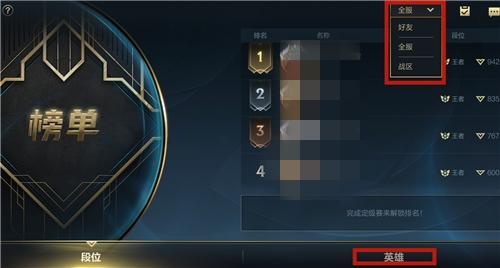 2.大厅页面点击底端的【排行】,点击下方的【英雄】,弹出新页面后,点击任意英雄,即可在页面左上角找到切换展区的按钮。战区显示的排名是你当前所在地区的英雄排名。