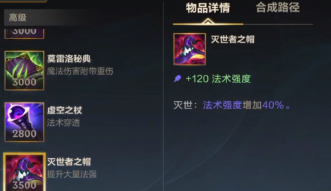 5、后续三件根据对面阵容选择出装顺序,对面阵容脆皮多的话可以直接出灭世者之帽。