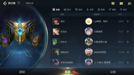1.打开英雄联盟手游主界面,并点击底部的排行