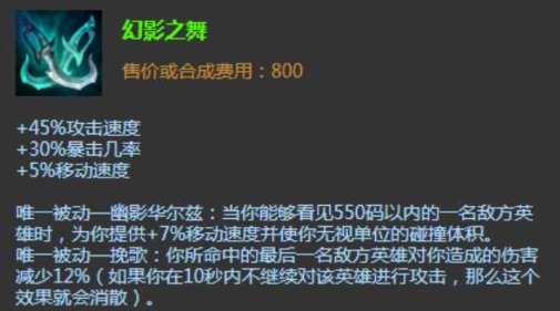 4、第四件可以选择幻影之舞,幻影之舞的被动可以提供一个护盾,增加塞纳的容错能力,起到保护作用。