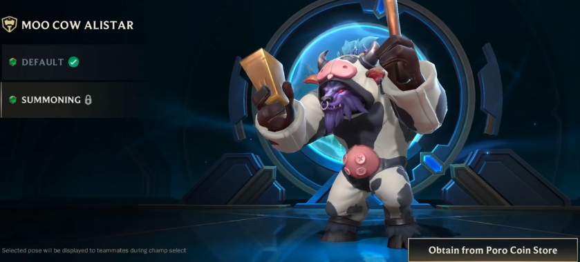 2.需要获得“哞利斯塔”这款皮肤,之后在皮肤的姿势界面里就可以查看动作并进行配置了。