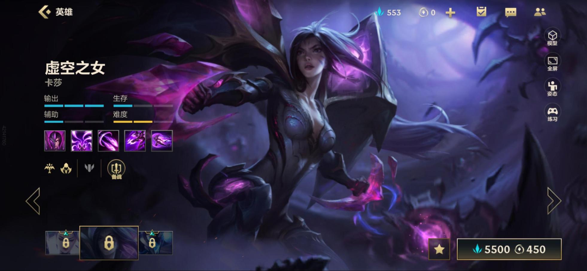 第一:虚空之女-卡莎,她的定位是射手/刺客,爆发能力很强,对线时三技能远距离消耗,敌方残血时大招突进,进化三技能后的隐身加速配合走位,可以轻易玩弄敌人与股掌。