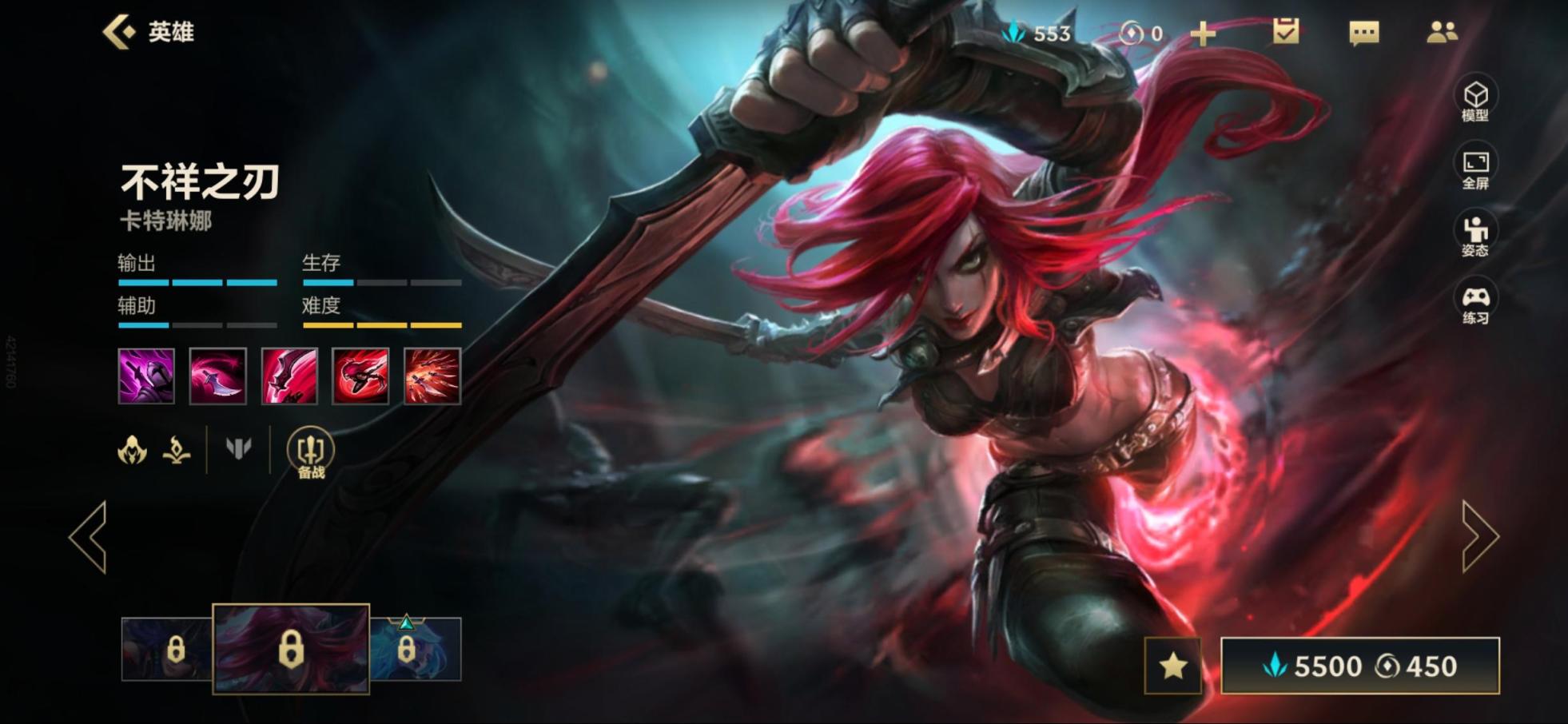 第二:不祥之刃-卡特琳娜,她的定位是法师/刺客,她拥有强大的单线击杀以及无解的团战输出能力,由于被动技能独特,她的对线伤害能力和收割能力都超出你的理解范围。