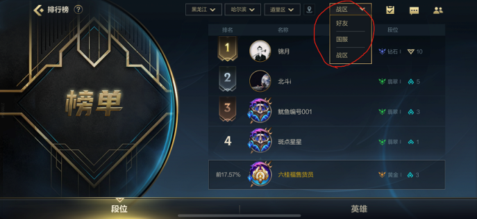 英雄联盟手游在哪看地区排名?
