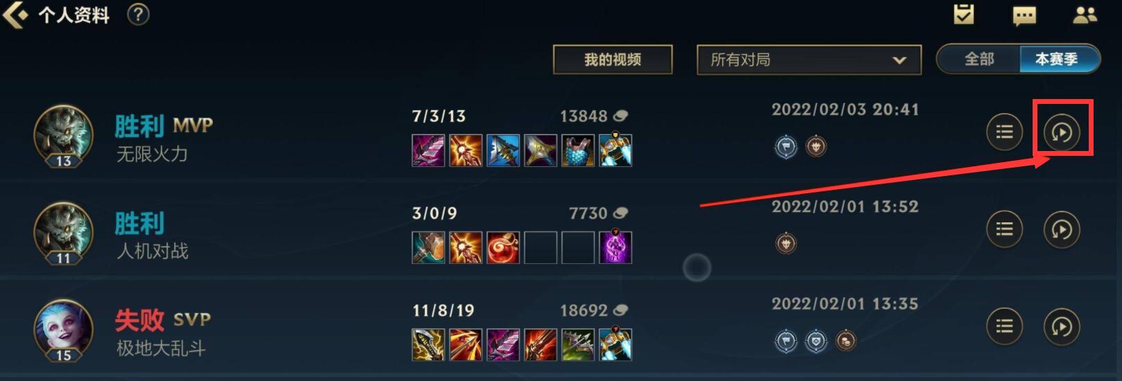 英雄联盟手游怎么看回放?
