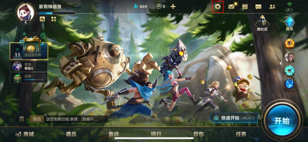 1、第一步:首先现在游戏界面右上角点击小齿轮,进入游戏设置界面。
