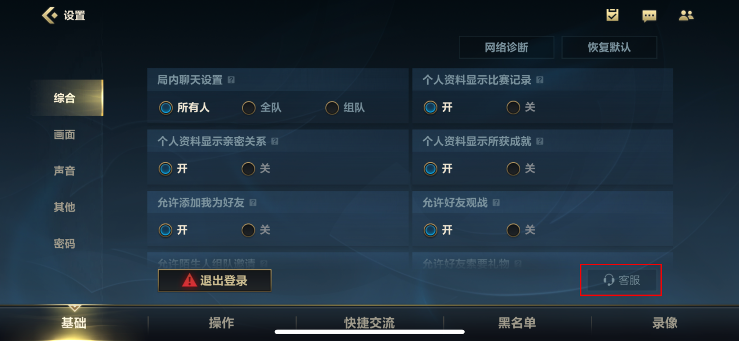 2、第二部:进入游戏设置界面后在右下角就可以看到客服联系入口了。