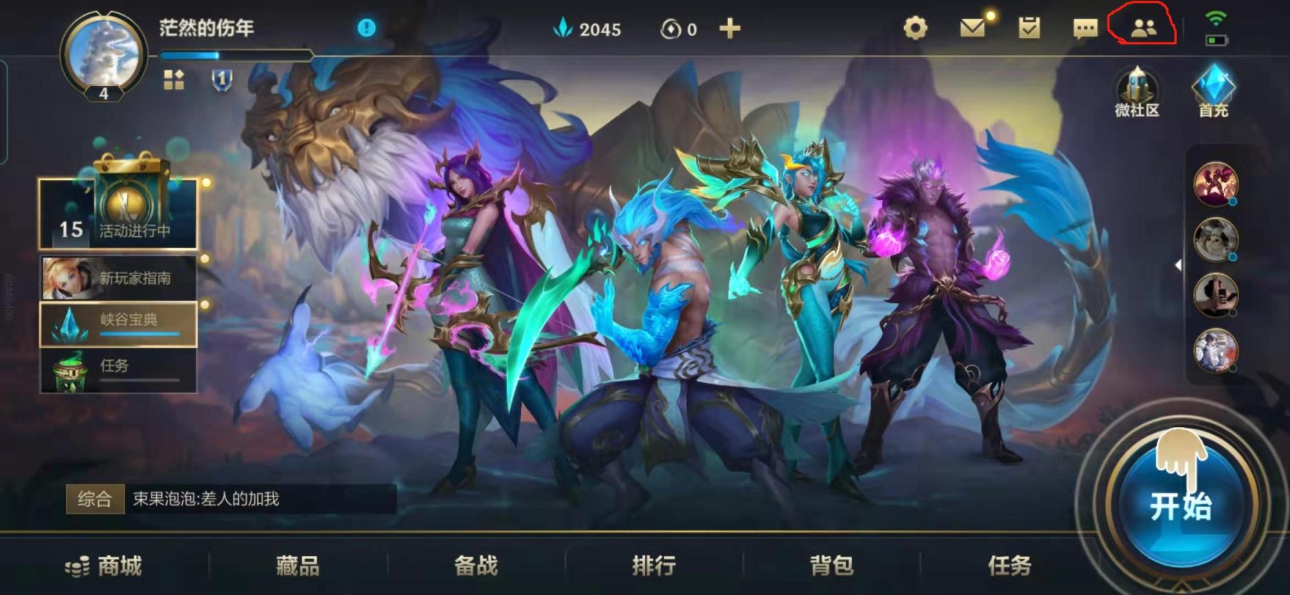 1、点击右上角的好友联系人图标。