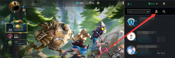 1.《英雄联盟手游》添加好友首先进入游戏首页,找到好友的图标,如下图所示;