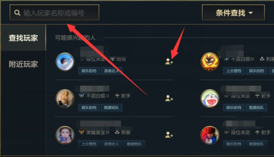 3.在搜索框输入好友的英雄联盟手游ID进行添加,要注意的是英雄联盟手游的ID并不是你取的名字,每个玩家在取昵称后系统会在后面加一串数字以免重复,所以你需要输入全部的ID才能够添加。