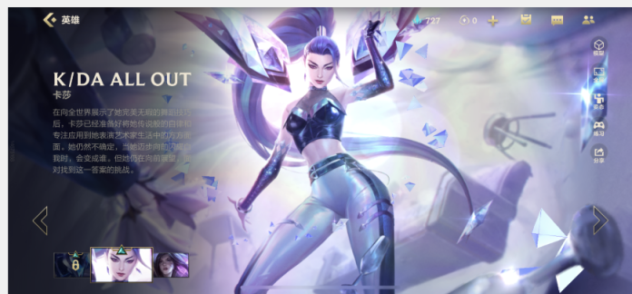 2、kda 卡莎 这款皮肤 kda系列皮肤的一款 非常好看 而且游戏中的建模也丝毫不逊色 舒服的打击感 让人十分青睐