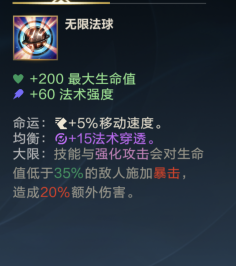 ②第二件 出无限发球 会对敌方低生命的英雄造成额外伤害