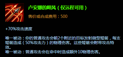 2、第二件出卢安娜的飓风,可以提供暴击和攻速,可以在普攻时对附近两名目标造成伤害。