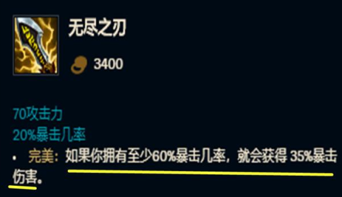 3、第三件出无尽之刃,可以提供额外的的暴击伤害。