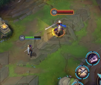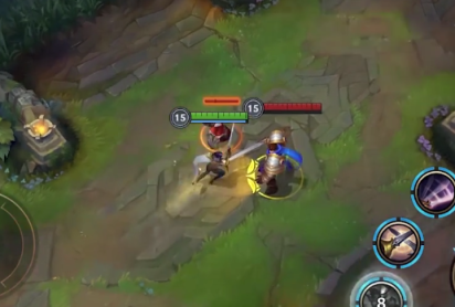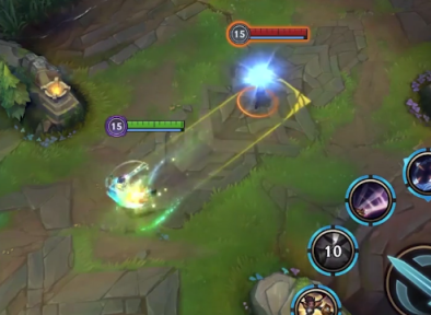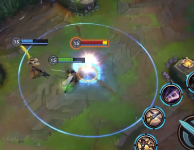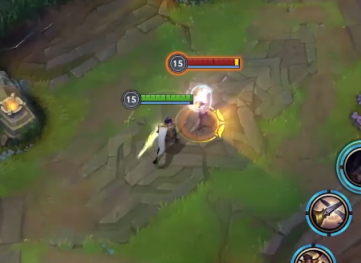 3、要注意三技能的使用,三技能是可以重置普A的要切记,并且第一下还有个减速效果,我们一技能 平A 三技能重置A一下。我们可以这样打出一个优良的小换血。对面被我们减速,并且我们有一个移动速度的加成,会很赚。