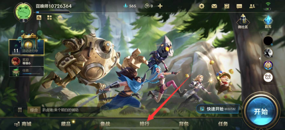 1.在游戏界面首页点击正下方的排行。