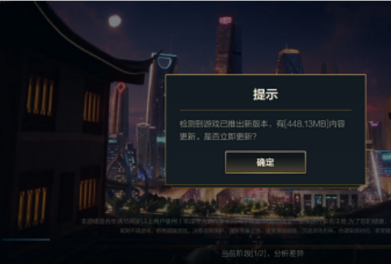 1、更新的方式比较简单得,登录游戏,进入游戏会有提示更新的窗口,点击更新选项就可以进行更新了。更新好之后就可以进行游戏了。