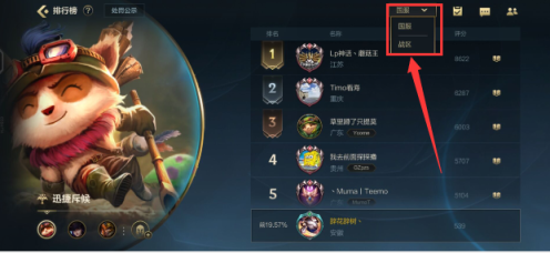 4.选择自己所要查看的地区即可该显示地区英雄排名