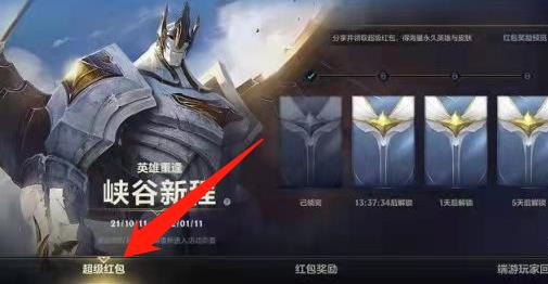 3、进入峡谷新程之后,左下角还可以领取超级红包。