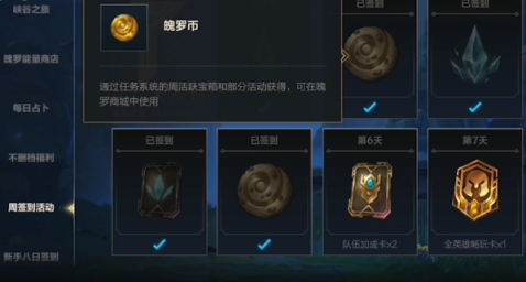 1、首先玩家在进入游戏之后,只需要在活动中找到周签到活动,每天签到就可以领取相应的魄罗币。