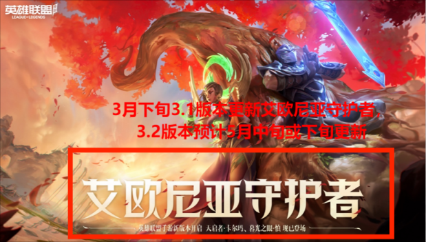 随着英雄联盟手游3.1版本艾欧尼亚守护者在2022年3月下旬的版本更新,很多玩家也好奇英雄联盟手游3.2版本什么时候更新,根据目前国服的更新时间来推断,英雄联盟手游3.2版本更新时间将在5月中旬更新。