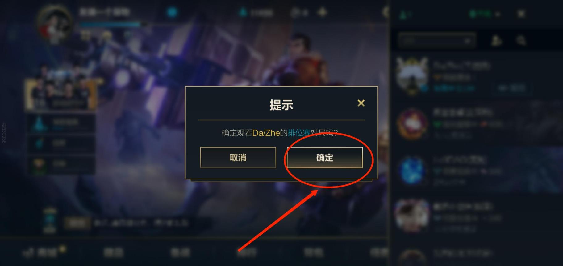 3、最后,在弹出页面点击【确认】后,即可观战好友的比赛。