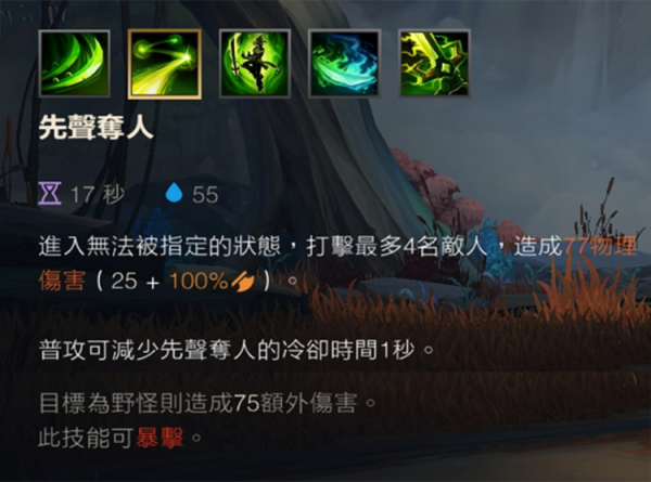 先声夺人的使用时机,正是看出一个剑圣玩家够不够老的关键所在,并且该技能有暴击属性收益,和高额的物理伤害加成,因此也衍生出了暴击流剑圣和物穿流剑圣的玩法。(PS:利用先声夺人躲避敌方技能的同时给对手造成伤害,并且可以通过任何一个敌方单位将伤害传递给附近的敌人,是剑圣玩家必须要了解的。)