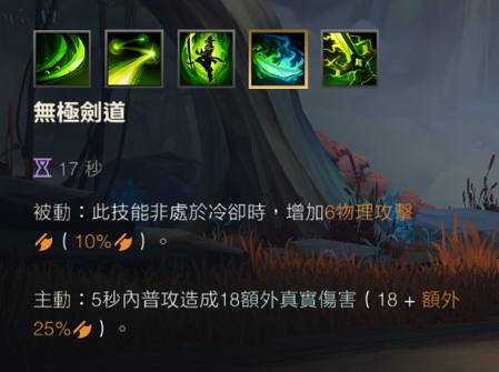 无极剑道的被动对于易大师来说相当于一件增加伤害的装备了,在需要的时候主动开启,打出真实伤害,面对坦克英雄时也一样能拳拳到肉。