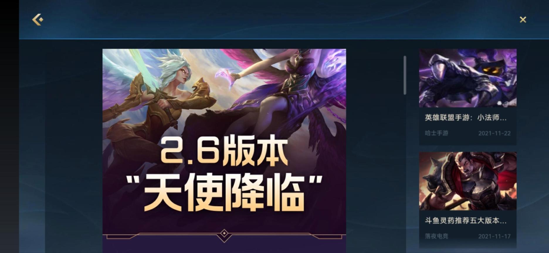 英雄联盟手游(lolm),2.6版本于今天也就是2021年12月03日更新的,更新内容新英雄凯尔、莫甘娜上线,英雄重做,新装备、目前官方在公告里面已经公布2.6版本已经更新的消息了。
