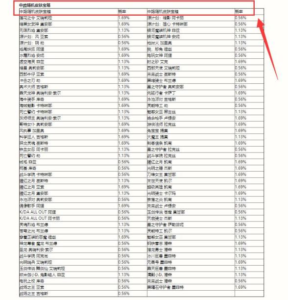 3.中路随机皮肤宝箱:莲花之令艾瑞莉娅、暗黑女武神黛安娜、无限烈焰黛安娜、源计划:风亚索、源计划:阴劫、焰尾妖狐阿狸、冰霜烈焰安妮、虚空海灵菲兹、暗星奥莉安娜、西部牛仔亚索等。详细皮肤及概率如下图所示: