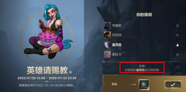 英雄联盟手游英雄请赐教活动所摆上去的英雄是金克丝,玩家可以根据英雄剪影得出答案,回答正确后会有提示的。