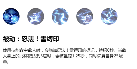 1、使用一技能为对手施加雷缚印后再使用二技能触发印记,可以超远距离消耗你的对手。