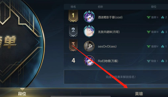 3、在这里我们就可以查看英雄排行了。