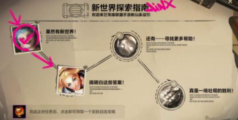 1、新玩家探索完后奖励一个皮肤箱子和两个英雄箱子。