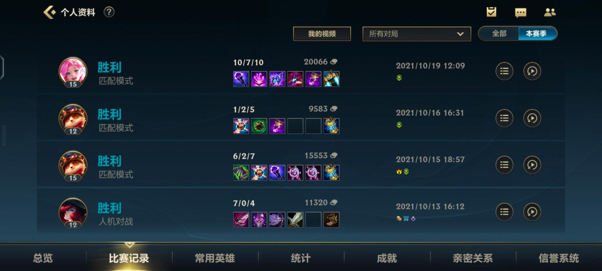 英雄联盟手游比赛记录怎么隐藏?