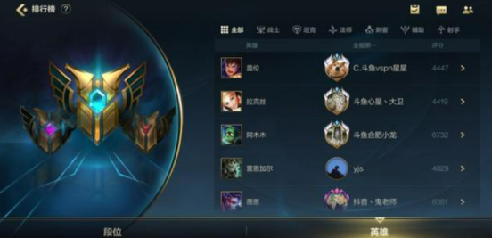 1、当玩家开启排位赛后,通过在排位中使用英雄获得胜利,就能提高该英雄的评分,系统会对所有玩家的单个英雄评分进行排名,通过排行榜的形式出现。