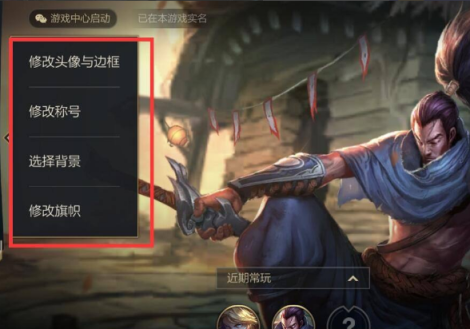 3、随后在这里可以看到修改头像和边框、修改称号、修改背景、修改旗帜等信息,就是没有修改昵称;