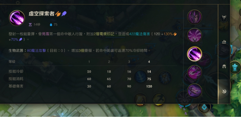 2.二技能施放前的挥动很长,但是因为可以提供3层等离子,所以前期攻速很慢的时候打中敌人还是很重要的。 但是团战后期,如果对面英雄已经贴脸了,即使有二技能也不建议放。二技能的施法动作会导致少平A打很多。后期二技能的作用主要用于远距离标记敌人或探索视野。
