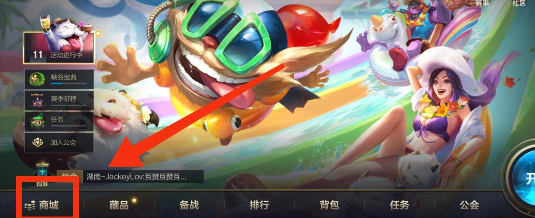2.活动期间获取方法是:首先在英雄联盟手游首页点击左下角的“商城”,如下图所示: